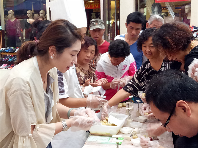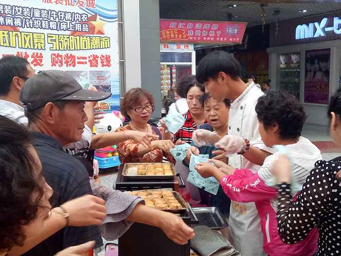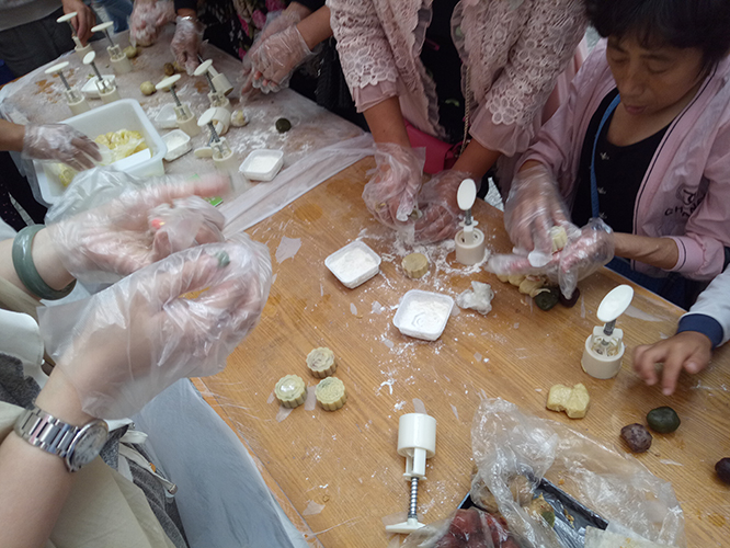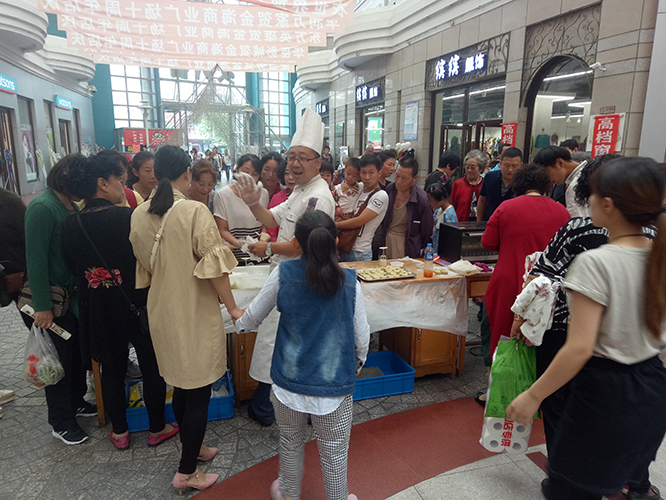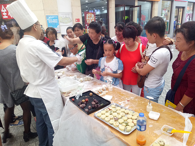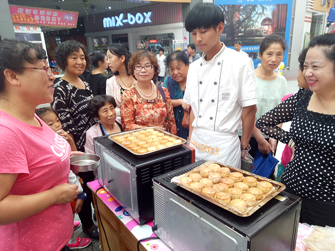 顧客在巧手師傅的指導(dǎo)下進(jìn)行揉面、搟制水油皮、包餡料的月餅制作過程。大家邊拉家常邊親手制作,氣氛和樂融融。讓顧客在金海商業(yè)廣場感受到故鄉(xiāng)的溫情與團(tuán)圓。制作好的月餅經(jīng)過烤箱烤制后大家一起品嘗,歡聲笑語不絕于耳。