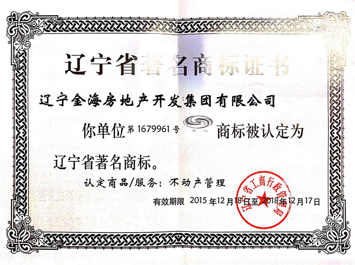 遼寧金海集團被遼寧省工商行政管理局授予“遼寧省著名商標”稱號。