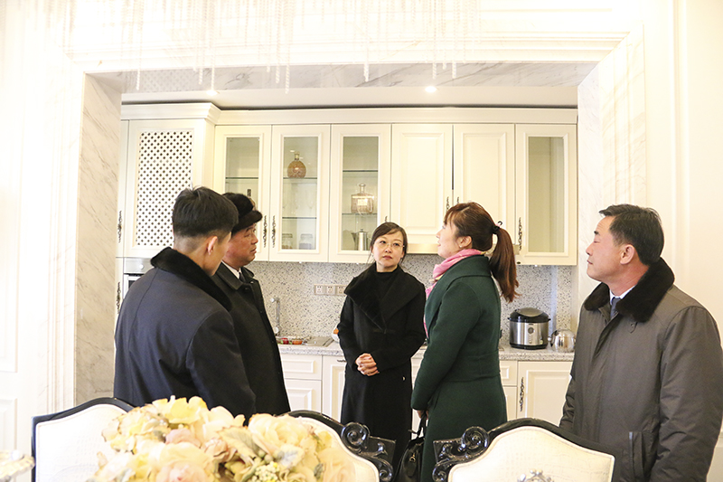 12月27日下午,朝鮮新義州市市長(zhǎng)和代表團(tuán)一行蒞臨金海?濱江3號(hào),丹東市副市長(zhǎng)潘爽及金海集團(tuán)常務(wù)副總經(jīng)理莫丹熱情接待了他們,并陪同參觀了金?!I江3號(hào)樣板間、園區(qū)、金海大廈電影院、社區(qū)食堂以及金海熙康體檢中心。
