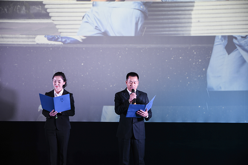 集團(tuán)辦公室金龍、孫丹主持晚會