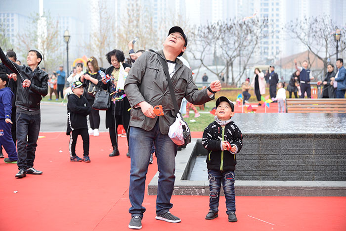 一年之際在于春,在春季放風(fēng)箏,象征“箏箏”日上的美好愿望,各式五彩繽紛的風(fēng)箏,與澄凈的碧空構(gòu)成一副如畫景象,帶著對(duì)詩(shī)意自然和美好生活的期許越飛越高……