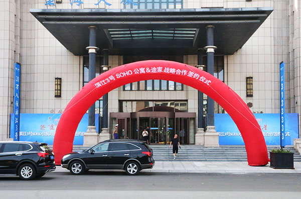 簽約儀式上,金海集團(tuán)總經(jīng)理孟國(guó)慶和途家遼寧區(qū)域總經(jīng)理劉佳音表達(dá)了建立長(zhǎng)久合作的良好愿望,并簽訂了戰(zhàn)略合作協(xié)議。途家高級(jí)業(yè)務(wù)經(jīng)理郝安琪在活動(dòng)現(xiàn)場(chǎng)為大家介紹了途家酒店特色的業(yè)主免費(fèi)交換入住體系,分享了如何讓公寓更加增值,更有保障。最后,金海集團(tuán)總經(jīng)理孟總和途家遼寧區(qū)域總經(jīng)理劉總一同上臺(tái),共同啟動(dòng)了啟動(dòng)球,標(biāo)志著金海與途家的合作正式開(kāi)啟。