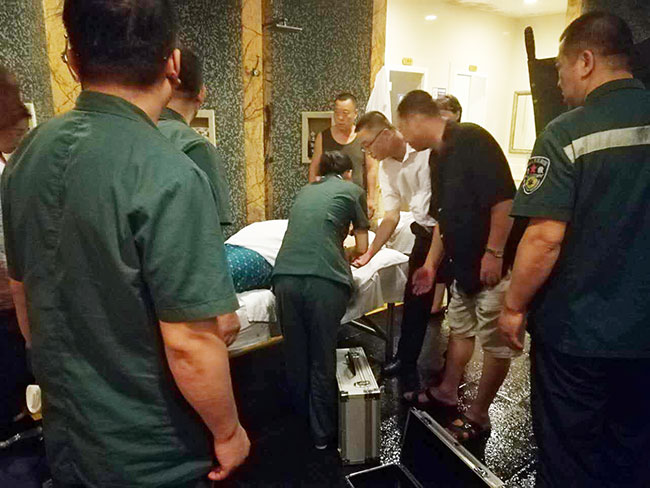 8月20日晚上9點(diǎn),在溫泉公館洗浴的一位業(yè)主在泡溫泉時(shí)突然感覺(jué)身體不適,不能說(shuō)話和動(dòng)彈。我們發(fā)現(xiàn)后立即做了應(yīng)急預(yù)案急救處理,聯(lián)系家屬,協(xié)調(diào)120救護(hù)車(chē)到現(xiàn)場(chǎng)。因擔(dān)心客人的身體情況,公館值班林經(jīng)理和員工跟隨病人去醫(yī)院,幫助家屬處理相關(guān)事宜,確認(rèn)客人無(wú)大礙時(shí)才回到公館。