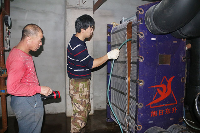 11月16日晚,由于承擔(dān)濱江三號A區(qū)的低區(qū)(6#、7#、8#、9#、10#、15#、16#、17#、18#樓16層以下)供暖任務(wù)的換熱站內(nèi)板式換熱器出現(xiàn)滲漏故障,熱力公司于17日早上9點停供后組織搶修。為確保濱江3號小區(qū)業(yè)主能快速恢復(fù)供暖,熱力公司立即啟動應(yīng)急預(yù)案,組織人員積極搶修濱江3號換熱站,全力以赴做好維修工作。對部分換熱站板換進行清洗,對滲漏的板片封閉膠條進行復(fù)位,同時還檢查板換有無滲漏情況。