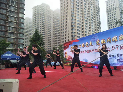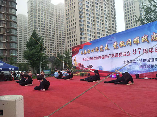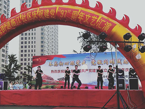 為慶祝偉大的中國(guó)共產(chǎn)黨建黨97周年,6月27日晚,在美麗的鴨綠江畔,丹東市臨江社區(qū)聯(lián)合轄區(qū)物業(yè)及居民隆重舉辦“建黨97周年慶典晚會(huì)”,金海物業(yè)應(yīng)邀參加了此次活動(dòng)并在活動(dòng)中獻(xiàn)上精彩的表演。當(dāng)晚,雖然下起了瀝瀝細(xì)雨,但前來(lái)觀看的市民卻絡(luò)繹不絕,現(xiàn)場(chǎng)氣氛十分熱烈。演出開(kāi)始前,濱江3號(hào)全民多彩社團(tuán)文藝社的業(yè)主們?yōu)楝F(xiàn)場(chǎng)的所有觀眾表演了一段精彩的藏族舞蹈《心上的羅加》,讓人眼前一亮,贏得了臺(tái)下陣陣掌聲。隨之演出拉開(kāi)大幕,在精彩紛呈的表演中,濱江3號(hào)管理部的管家和保安團(tuán)隊(duì)也登臺(tái)一展風(fēng)姿,表演了舞蹈《光榮的使命》,臺(tái)上的她們舞姿優(yōu)美,英姿颯爽,可謂是亦柔亦剛,給江城的父老相親和外地的游客展現(xiàn)了金海物業(yè)人的多樣風(fēng)采,大家掌聲雷動(dòng),讓人印象深刻。