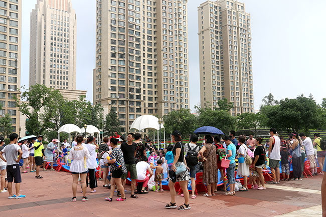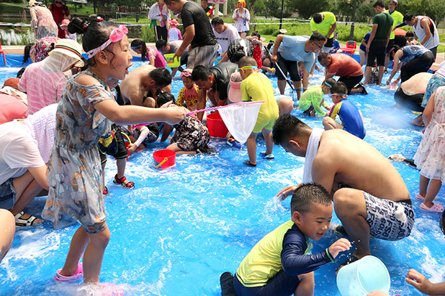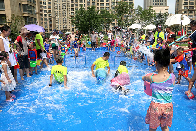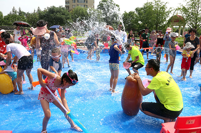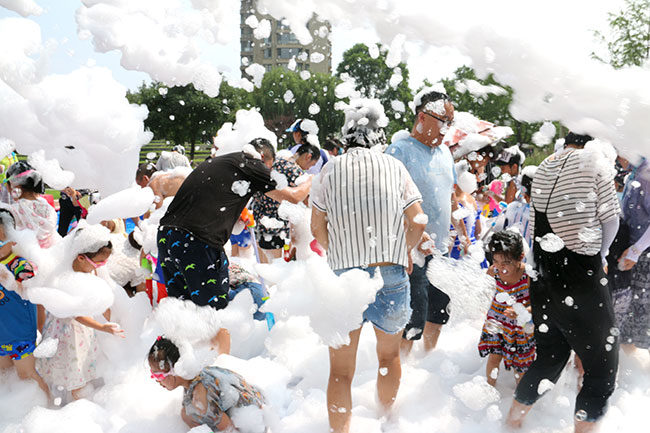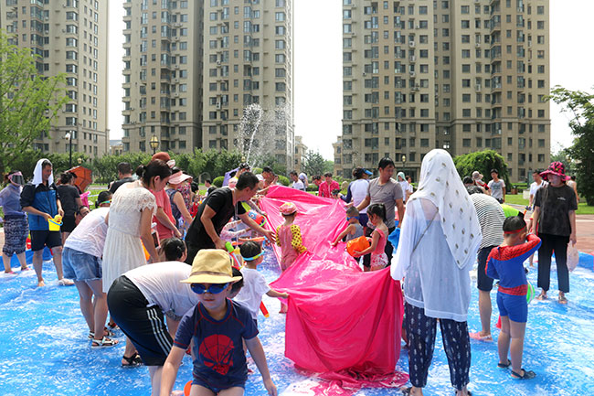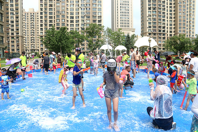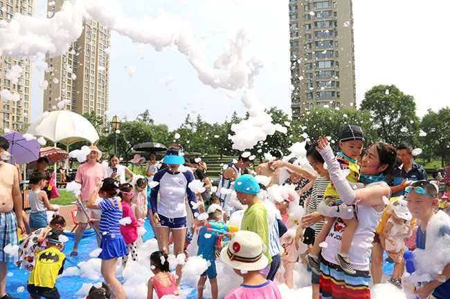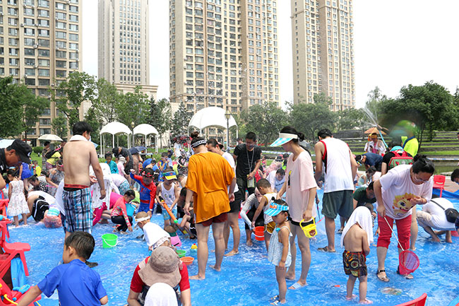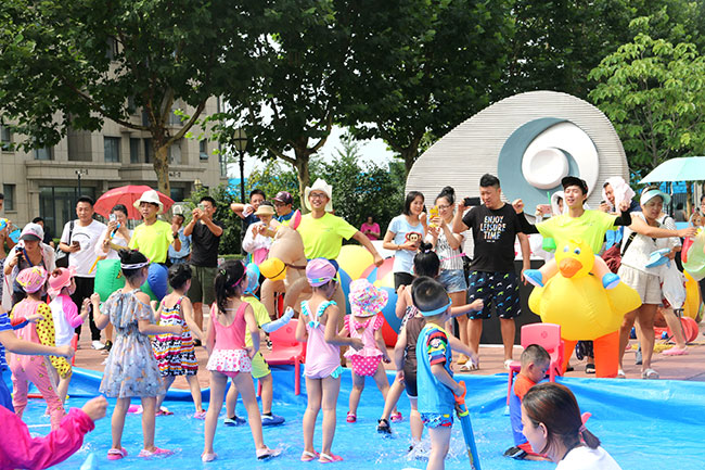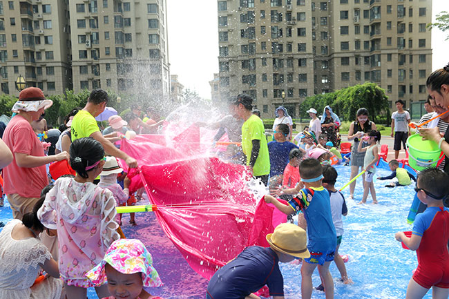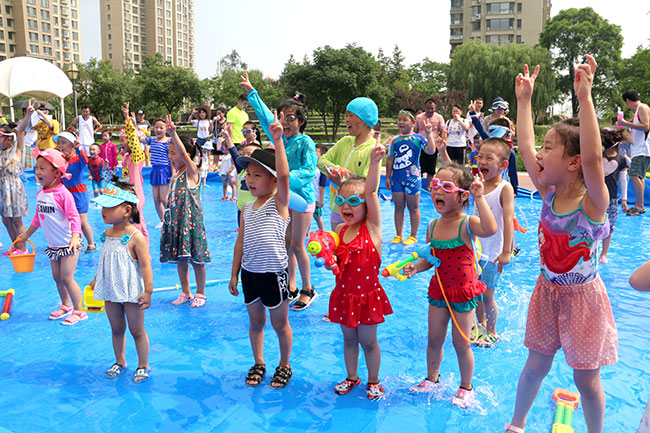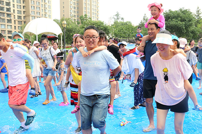 濱江3號(hào)園區(qū)現(xiàn)場(chǎng)人頭攢動(dòng),熱鬧非凡!大的小的孩子,紅的綠的水槍?zhuān)w濺的水花,泡沫,爽朗的笑聲,刺激的尖叫聲,就像一個(gè)個(gè)美妙的音符,共同譜寫(xiě)出一場(chǎng)別開(kāi)生面的音樂(lè)會(huì)。孩子和大人們?cè)谒氖澜缰校M情交流,親近,溝通,釋放······