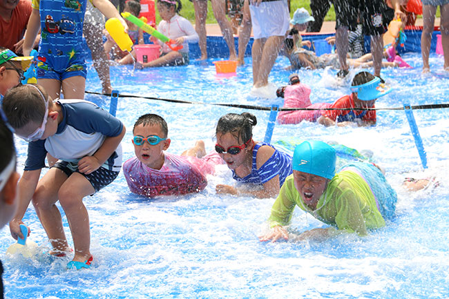 這次的水上運(yùn)動(dòng)會(huì)共設(shè)置多個(gè)游戲環(huán)節(jié),分別是狂歡泡沫大戰(zhàn)、尋寶活動(dòng)、泡沫排球、潑水活動(dòng)、美人魚(yú)比賽、抓泥鰍等。讓寶貝體驗(yàn)到不同的水上游戲,充分感受水的魅力。每一個(gè)游戲都充滿了樂(lè)趣,孩子們和家長(zhǎng)親密配合,玩得不亦樂(lè)乎。