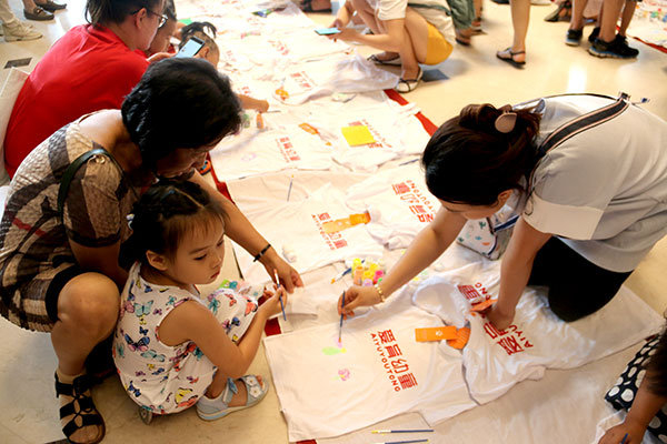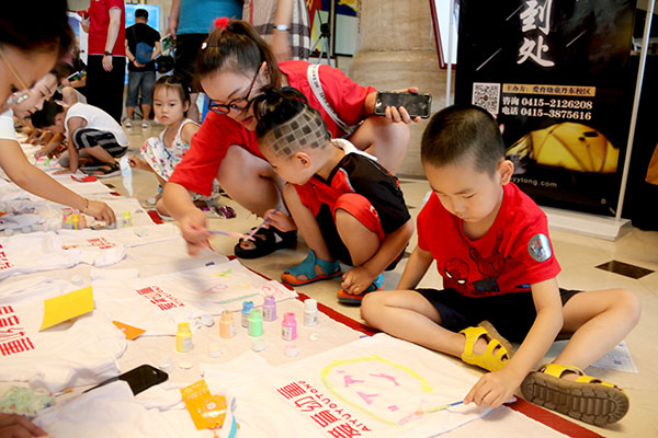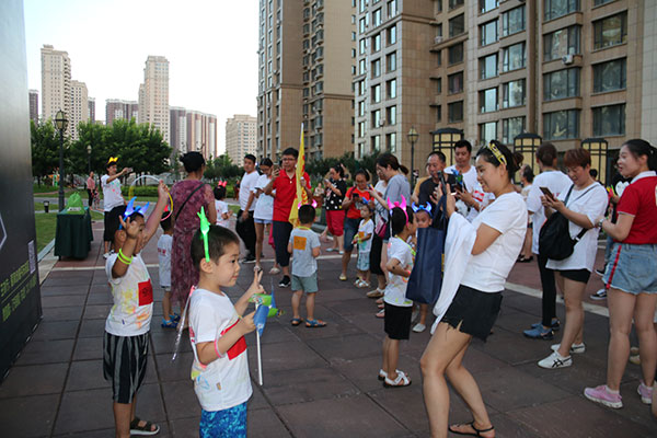 經(jīng)營中心置業(yè)顧問首先為大家分享了濱江3號項目及近期清盤政策。主持人宣布活動流程,參與者以家庭為單位,根據(jù)自己的需求用熒光顏料、熒光筆、T恤等材料,隨性裝扮出不一樣的“戰(zhàn)袍”。