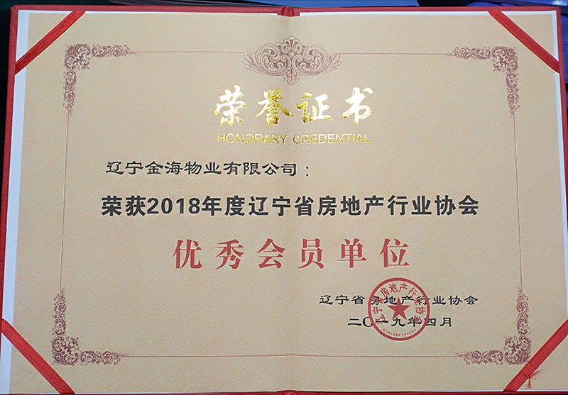 遼寧金海物業(yè)有限公司榮獲2018年度遼寧省房地產(chǎn)行業(yè)協(xié)會(huì)《優(yōu)秀會(huì)員單位》。