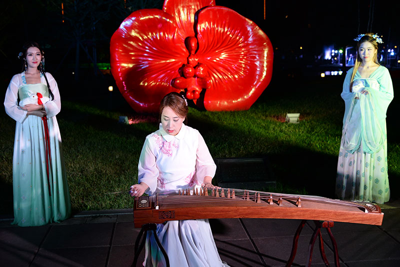 演奏曲目有《琵琶行》,《紅顏舊》,《星月神話》等,悠揚飄蕩,綿延回響,無限的深情縈繞在美麗園區(qū)空間,纏綿的思念流淌在人們心間。