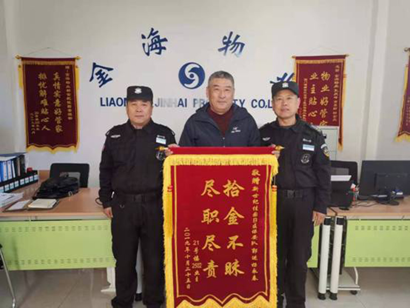 第二天,郭進(jìn)班長吩咐各崗執(zhí)勤保安,如果看到業(yè)主,一定要提醒他去取回錢包。在大家的努力下,業(yè)主在第二天上午就取回了丟失的錢包。業(yè)主對金海保安員的感激之情溢于言表,給新世紀(jì)佳園管理部送來了錦旗,表達(dá)錢包失而復(fù)得的激動(dòng)心情和感激之意。