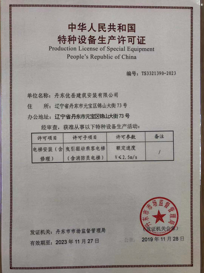 喜訊:金海電梯公司取得特種設(shè)備生產(chǎn)許可證并全面運營