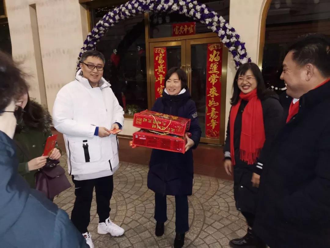 1月24日,農(nóng)歷臘月三十,街頭張燈結(jié)彩、道路車水馬龍,到處洋溢著歡樂的節(jié)日氣氛。晚7時,在萬家燈火、喜慶團(tuán)圓的除夕夜,遼寧金海集團(tuán)總經(jīng)理蘇瑩、副總經(jīng)理李郁、集團(tuán)辦公室主任李秀悅等領(lǐng)導(dǎo),代表高翔董事長和集團(tuán)董事會,深入金海大廈、金海濱江3號、金海春風(fēng)熱力公司、金海商業(yè)公司、金海溫泉小鎮(zhèn)、金海溫泉公館等工作一線,向節(jié)日期間仍堅守崗位的金海員工致以節(jié)日的祝福,并送上新春大禮包,祝愿他們在新的一年人旺氣旺身體旺,財旺富旺運道旺!同祝愿遼寧金海集團(tuán)在2020年新業(yè)旺,鴻運旺,再創(chuàng)輝煌!