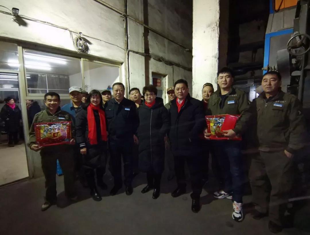 每到一處,領(lǐng)導(dǎo)們都會與堅守崗位的員工一一握手,詳細(xì)詢問他們的工作生活情況,感謝他們?yōu)榧瘓F(tuán)的發(fā)展所作出的貢獻(xiàn),并希望全體員工在新的一年里努力工作,再立新功。
