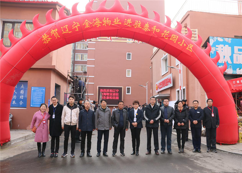 儀式結束后,遼寧金海物業(yè)領導與興東街道辦事處、泰和社區(qū)、泰和花園業(yè)委會領導合影留念。