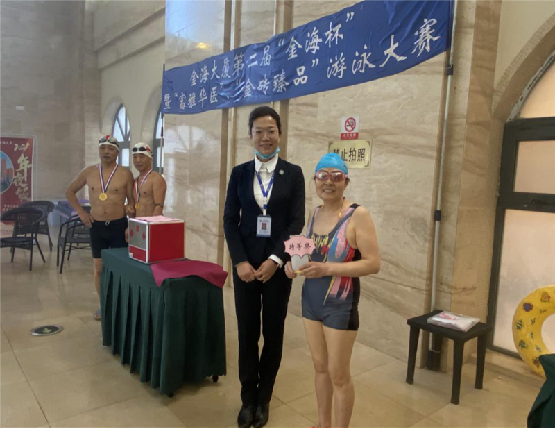 最后游泳館負(fù)責(zé)人王娜經(jīng)理感謝各位業(yè)主的積極參與,并宣布金海大廈游泳館第二屆“金海杯”游泳大賽圓滿結(jié)束!