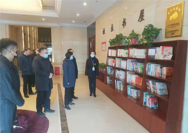 遲磊書記一行先后參觀了金海影院、百米長廊、社區(qū)書屋等場所,對金海利他精神及紅色物業(yè)工作給予好評。