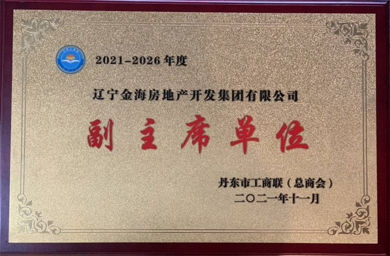 2021年11月,遼寧金海房地產(chǎn)開(kāi)發(fā)集團(tuán)有限公司當(dāng)選丹東市工商聯(lián)(總工會(huì))2021-2026年度副主席單位。