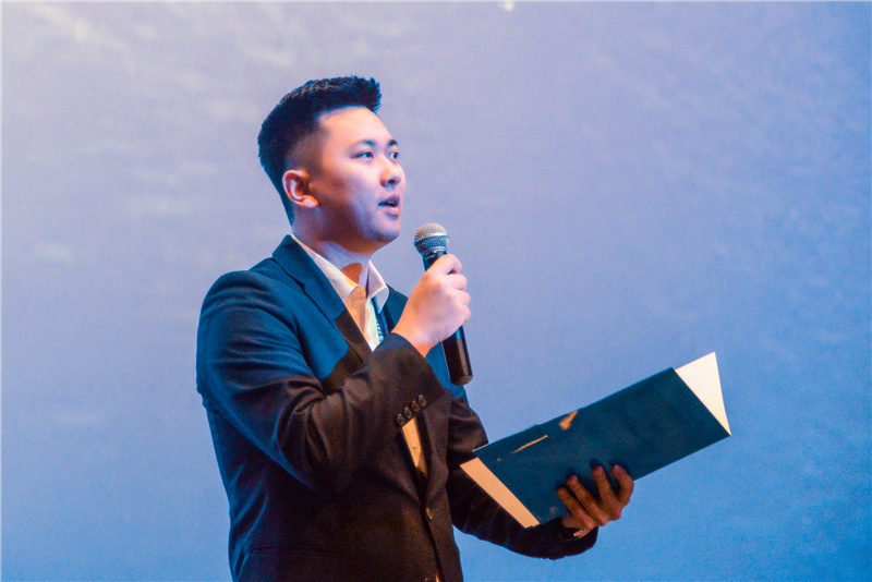 第四部分為董事長講話,由集團(tuán)總經(jīng)理助理、招采部副經(jīng)理于鐘棋代表高翔董事長宣誦《女嬰》。
