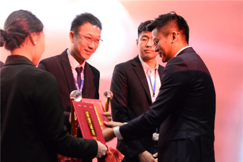 二等獎(jiǎng)獲得者上臺(tái)領(lǐng)獎(jiǎng),集團(tuán)副董事長、常務(wù)副總經(jīng)理李小琳為二等獎(jiǎng)獲得者頒發(fā)獎(jiǎng)杯獎(jiǎng)狀